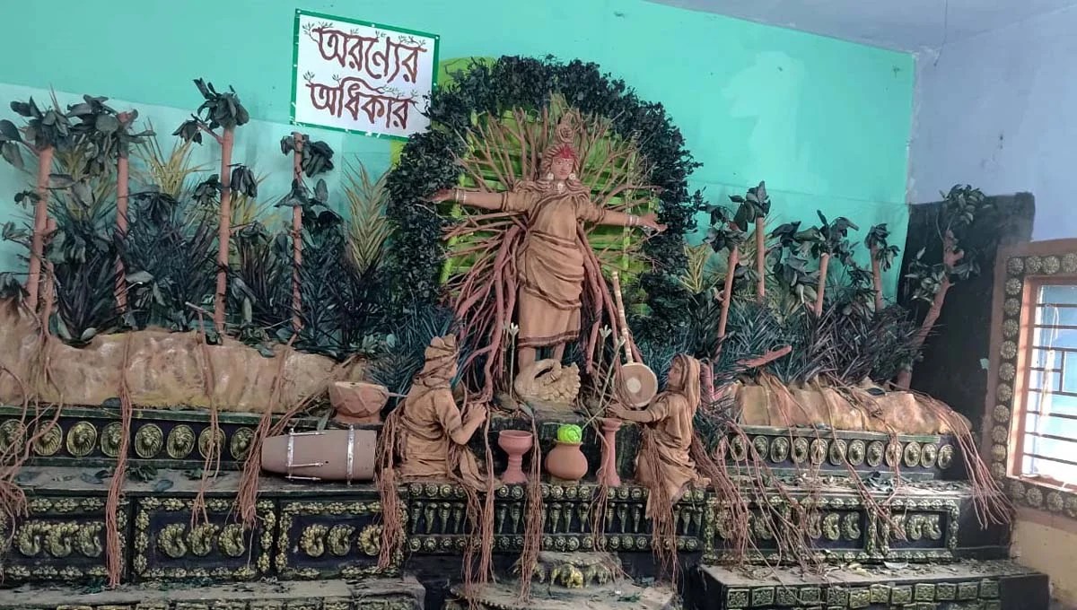 সরস্বতী পূজার থিমে প্রকৃতি বাঁচানোর বার্তা