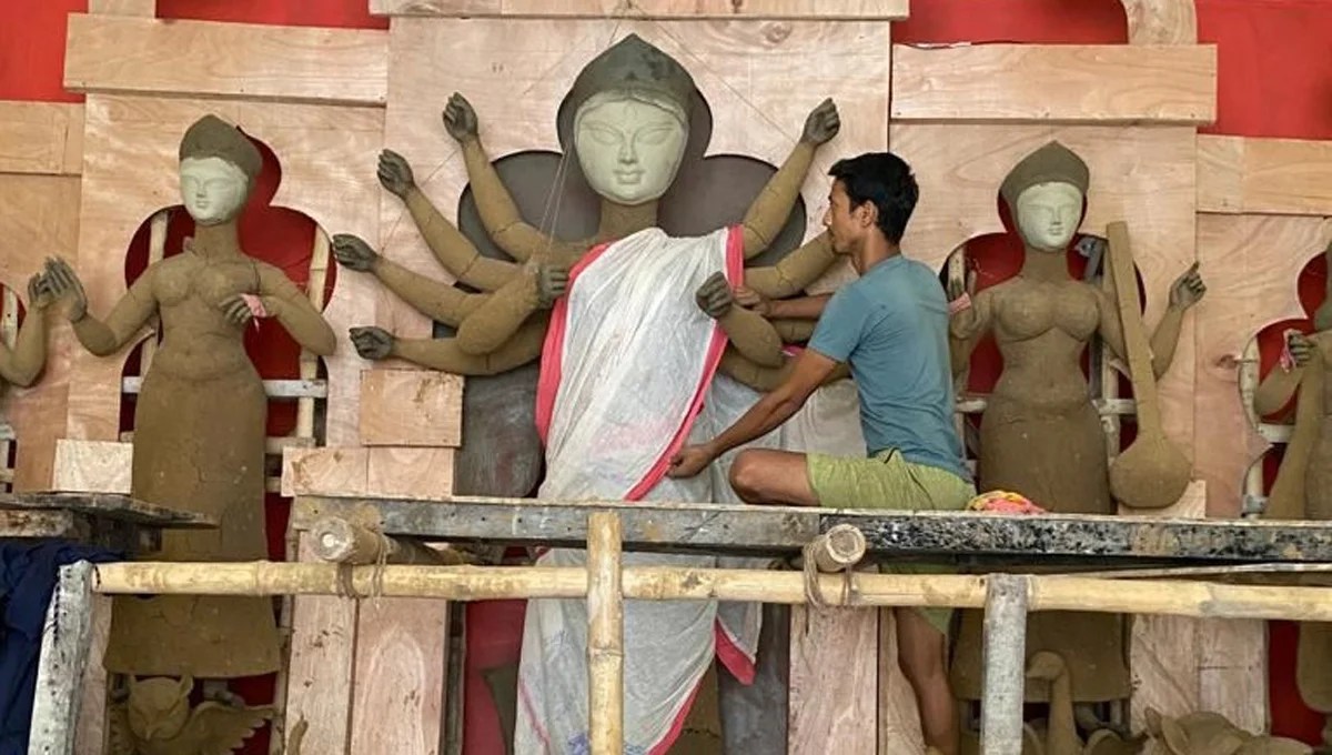 দেবীবরণে দক্ষিণ ভারতের আদলে মণ্ডপ সাঁইথিয়ায়