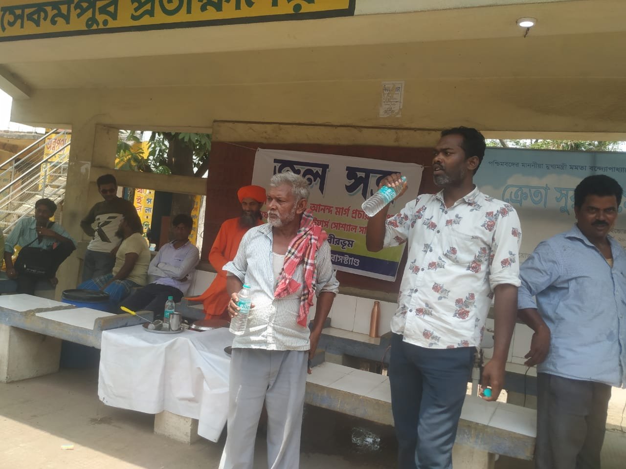 বীরভূম জেলা জুড়ে প্রখর রৌদ্রের তাপপ্রবাহের মানুষের ওষ্ঠাগত প্রান। তাপমাত্রা ৪১-৪২ ডিগ্রীর ধারে কাছে। সরকারি ভাবে করা সতর্কতা জারি হয়েছে। মানুষ হয়ে মানুষের পাশে দাঁড়াতে বিভিন্ন জায়গায় নানা সংগঠনের পক্ষ থেকে জলসত্রের ব্যবস্থা করা হয়েছে জেলার বিভিন্ন স্থানে। অনুরূপ ভাবে সেকমপুর বাসস্ট্যান্ডে আনন্দমার্গ প্রচারক ইমাদপুর সংঘের ব্যবস্থাপনায় এবং ভলেন্টিয়ার্স সোসাল সার্ভিসের সহযোগীতায় শুরু হয়েছে জলসত্রের ব্যবস্থা। সংগঠনের পক্ষ থেকে জানানো হয় যে গত ২৭ তারিখ হইতে প্রতিদিন সকাল ১০ টা থেকে বিকাল ৩টা পর্যন্ত পথ চলতি মানুষজনকে বাতাসা সহ ঠান্ডা জল খাওয়ানোর আয়োজন করা হয়েছে, চলবে রৌদ্রের তাপপ্রবাহ না কমা পর্যন্ত।