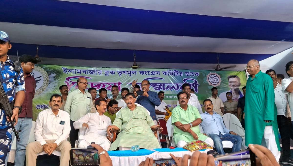বীরভূমের ইলামবাজারে ব্লক তৃণমূল কংগ্রেসের উদ্যোগে বিজয়া সম্মিলনী অনুষ্ঠিত হলো ইলামবাজার রাইস মিলের মাঠে। বিকেল তিনটেয় এই সভা অনুষ্ঠিত হয়। মুখ্য বক্তা হিসেবে উপস্থিত ছিলেন তৃণমূলের জেলা সভাপতি অনুব্রত মণ্ডল। যদিও এই সম্মেলনে অনুপস্থিত ছিলেন জেলা পরিষদের সভাধিপতি ফায়জুল হক ওরফে কাজল সেখ। এদিন ইলামবাজার ব্লক সহ বিভিন্ন অঞ্চলের ও এলাকার গ্রাম গঞ্জ থেকে দলের কর্মী সমর্থক সহ সাধারণ মানুষজন উপস্থিত ছিলেন। মঞ্চে উপস্থিত ছিলেন ক্ষুদ্র বস্ত্র কুটির শিল্প ও কারামন্ত্রী চন্দ্রনাথ সিনহা, বোলপুর লোকসভা কেন্দ্রের সাংসদ অসিত কুমার মাল, সিউড়ি বিধানসভার বিধায়ক বিকাশ রায় চৌধুরী, ইলামবাজার ব্লক তৃণমূল কংগ্রেসের সভাপতি ফজলুর রহমান, জেলা পরিষদের মৎস্য ও প্রাণিসম্পদ কর্মাধ্যক্ষ রবি মুর্মু , ইলামবাজার পঞ্চায়েত সমিতির সভাপতি সুদীপ্তা সাহা হালদার ও সহ-সভাপতি দুলাল চন্দ্র রায় সহ গ্রাম পঞ্চায়েত স্তরের দলীয় সভাপতি ও সদস্যরা। এদিনও অনুব্রত মণ্ডল তার বক্তব্যে দলের কর্মী সমর্থকদের বাক সংযত হওয়ার আহ্বান জানান। সাধারণ মানুষের কাছে গিয়ে তাদের কি অভাব অভিযোগ তা শোনার জন্য দলীয় কর্মীদের নির্দেশ দেন। পঞ্চায়েত সদস্য প্রধানদের এলাকার সাধারণ মানুষের কাছে যাওয়ার পরামর্শ দেন। আগামী ২০২৬ এর বিধানসভা নির্বাচনের দিকে তাকিয়ে দলীয় কর্মীদের একসাথে পথ চলার নির্দেশ দেন তিনি।