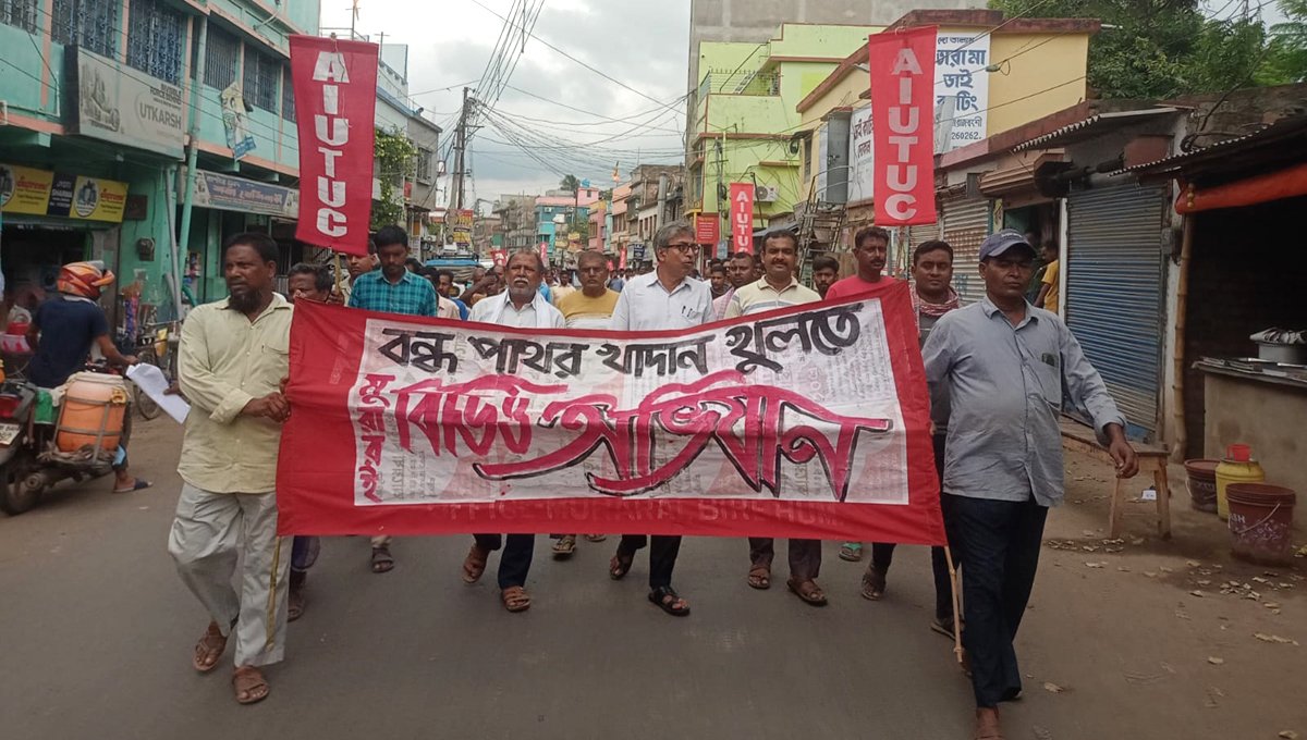 রামপুরহাট মহকুমার বিভিন্ন এলাকায় রয়েছে পাথর খাদান। সেই পাথর শিল্পাঞ্চল এলাকায় বহু মানুষের রুটি রুজি। কিন্তু সেই সমস্ত পাথর খাদান বন্ধ হয়ে পড়লে বেশিরভাগ শ্রমিকদের রোজগারে পড়ে টান। সংসারে দেখা দেয় অভাব অনটন। সেরূপ ঘটনার সম্মুখীন হয়ে পড়ে রাজগ্রাম পাথর খাদানের শ্রমিকরা। মঙ্গলবার রাজগ্রাম পাথর খাদান এলাকার বন্ধ কারখানা খোলার দাবিতে এসইউসিআই কমিউনিস্ট পার্টি প্রভাবিত শ্রমিক সংগঠন এ আই ইউ টি ইউ সি অনুমোদিত রাজগ্রাম স্টোন কোম্পানি লেবার ইউনিয়নের পক্ষ থেকে মুরারই এক নম্বর ব্লক সমষ্টি উন্নয়ন আধিকারিকের অফিসের সামনে বিক্ষোভ মিছিল প্রদর্শন ও ডেপুটেশন প্রদান কর্মসূচী অনুষ্ঠিত হয়।