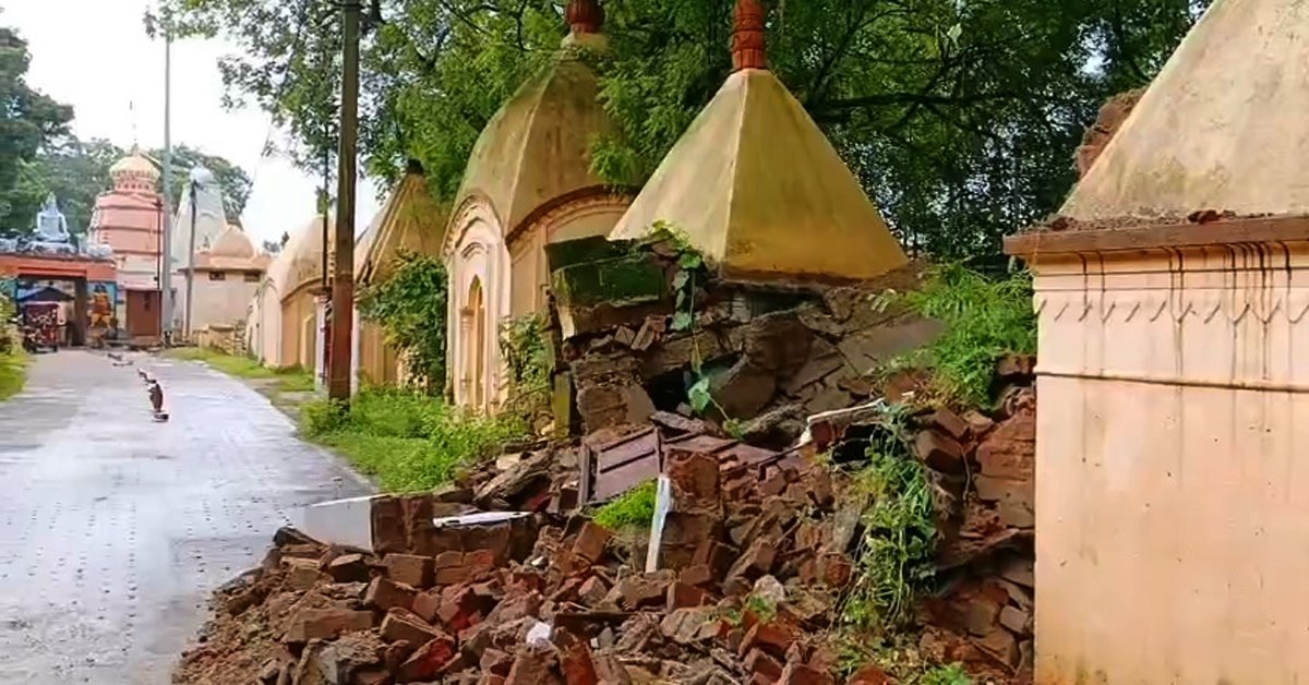 একটানা বৃষ্টির ফলে ভেঙ্গে পড়ল বীরভূমের অন্যতম সতীপীঠ বক্রেশ্বরের একটি প্রাচীন নাট মন্দির। যদিও প্রাণহানির কোনো খবর নেই বলে বক্রেশ্বর মন্দির উন্নয়ন কমিটির পক্ষ থেকে জানানো হয়েছে। উল্লেখ্য, পঞ্চপীঠের বীরভূমে অন্যতম সতীপীঠ বক্রেশ্বর। বীরভূমের দুবরাজপুর ব্লকে বক্রেশ্বর নদীর তীরে অবস্থিত একটি প্রাচীন শৈবক্ষেত্র। বছর ভর হাজার হাজার পুণ্যার্থীদের আনাগোনা। মন্দির কমপ্লেক্সের অভ্যন্তরে মহিশমর্দিনী ও বক্রেশ্বর মন্দির। গরম জলের কুণ্ড সহ সারা বক্রেশ্বর জুড়েই রয়েছে শতাধিক মন্দির। গতকাল সন্ধ্যাবেলায় একটানা বৃষ্টির ফলে মূল মন্দিরে ঢোকার পথেই “হরি ওম আশ্রম” সংলগ্ন একটি প্রাচীন নাটমন্দির ভেঙে পড়ে যায়। ভিতরে দু একটি সাইকেল চাপা পড়ে থাকলেও প্রাণহানি হয়নি বলে বক্রেশ্বর মন্দির উন্নয়ন সেবা এর সমিতির সদস্য দেবনাথ মুখার্জি জানিয়েছেন।