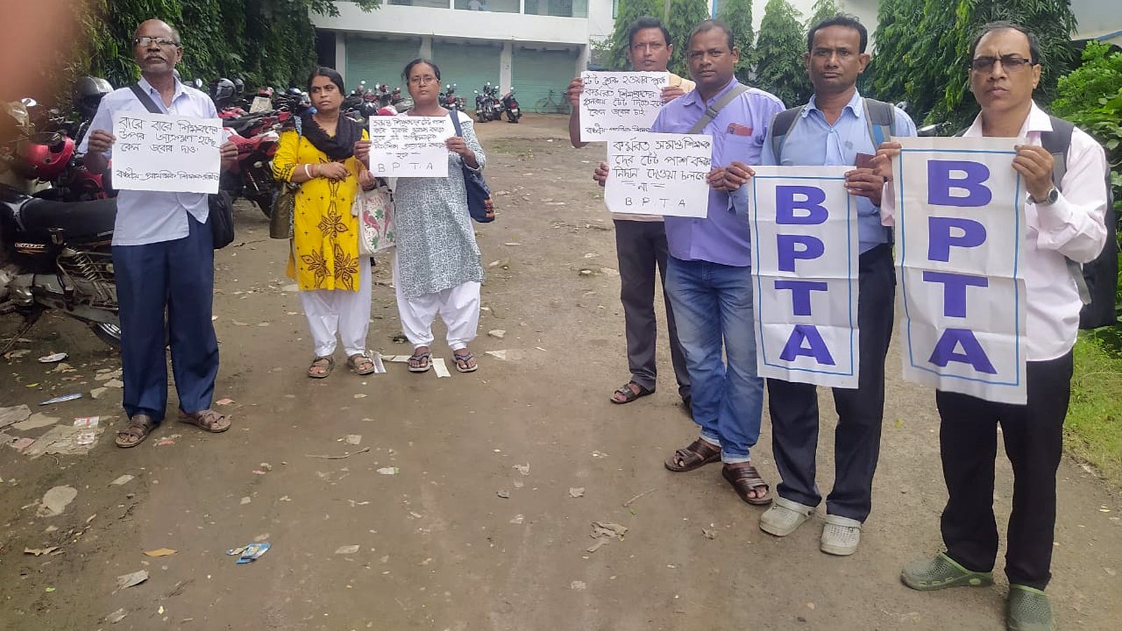 টেট সম্পর্কিত সুপ্রিম কোর্টের রায়ের পরিপ্রেক্ষিতে আইনি লড়াই সহ শিক্ষকদের চাকরি সুরক্ষার দাবি নিয়ে বৃহস্পতিবার রাজ্যের শিক্ষামন্ত্রীর উদ্দেশ্যে ডেপুটেশন প্রদান করা হয় জেলা প্রাথমিক বিদ্যালয় পরিদর্শক এর মাধ্যমে। বঙ্গীয় প্রাথমিক শিক্ষক সমিতির পক্ষ থেকে দাবি সম্বলিত পোস্টার ও মিছিল সহযোগে ডেপুটেশন প্রদান করা হয় । দাবি অনুসারে জানা যায় যে, গত ১ সেপ্টেম্বর মহামান্য সুপ্রিম কোর্ট কয়েকটি রাজ্যের সংখ্যালঘু স্কুল এবং প্রাইভেট স্কুলের শিক্ষকদের যোগ্যতার মান এবং পদোন্নতির বিষয়ে টেট সংক্রান্ত রায় দিয়েছেন। কিন্তু প্রাথমিক শিক্ষকদের মধ্যে টেট পরীক্ষা দিয়ে নিযুক্ত হননি এবং অবসরের জন্য ৫ বছরের বেশি বাকি রয়েছে তাঁদের টেট পরীক্ষা দিয়ে গুণমান বজায় রাখতে এ রাজ্যে তড়িঘড়ি করে সুপ্রিম কোর্টের রায়কে লাগু করবার জন্য রাজ্য প্রাথমিক শিক্ষা পর্ষদ বিজ্ঞপ্তি (2104/WBBPE/2025/1242L-09/25) জারি করেন। সেক্ষেত্রে শিক্ষকদের বায়োডাটা জমা দিতে বলেছেন। পর্ষদের এরূপ সিদ্ধান্তে শিক্ষক মহলে গভীর উদ্বেগের সৃষ্টি হয়েছে।