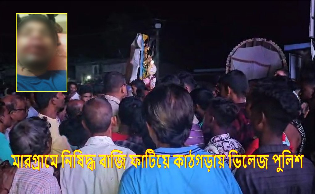 গতকাল বিসর্জনের রাতে চাঞ্চল্যকর ঘটনা ঘটে বীরভূমের চাঁদপাড়া গ্রামে। নিষিদ্ধ বাজিতে গুরুতর যখম হেমন্ত বাগদী নামে এক যুবক। এই ঘটনায় অভিযোগ উঠেছে স্বয়ং ভিলেজ পুলিশের বিরুদ্ধে। ঐ যুবকের মুখে বাজি ফাটিয়েছেন কর্তব্যরত ভিলেজ পুলিশ। উল্লেখ্য ২৪ বছরের হেমন্ত বাগদী তার স্ত্রী শুক্লা বাগদীকে সঙ্গে নিয়ে বৃহস্পতিবার রাত সাড়ে ন’টা নাগাদ বিসর্জন দেখতে বেরিয়েছিলেন। হঠাৎই ঐ ভিলেজ পুলিশ নিষিদ্ধ বাজি ছুঁড়ে দেন তাঁর মুখের দিকে। মুহূর্তেই হেমন্ত গুরুতরভাবে আহত হন। তড়িঘড়ি তাঁকে নিয়ে যাওয়া হয় বীরভূমের রামপুরহাট মেডিকেল কলেজ হাসপাতালে। বাজিটি ছিল কুখ্যাত ‘ব্ল্যাক ক্যাট’, যা অত্যন্ত বিপজ্জনক। তবে পুলিশের দাবি, এটি ছিল সাধারণ ‘কালি ফটকা’। এই ঘটনার পরে পরেই চাঁদপাড়া গ্রামে তীব্র উত্তেজনা ছড়িয়ে পড়ে। ক্ষুব্ধ গ্রামবাসীরা বিক্ষোভে ফেটে পড়েন এবং বিসর্জনের মিছিল বন্ধ করে দেন। পরিস্থিতি ঘিরে রীতিমতো অশান্তি তৈরি হয়। উত্তেজনা সামাল দিতে ঘটনাস্থলে অতিরিক্ত পুলিশ মোতায়েন করা হয়। ঘটনার তদন্ত শুরু হয়েছে।