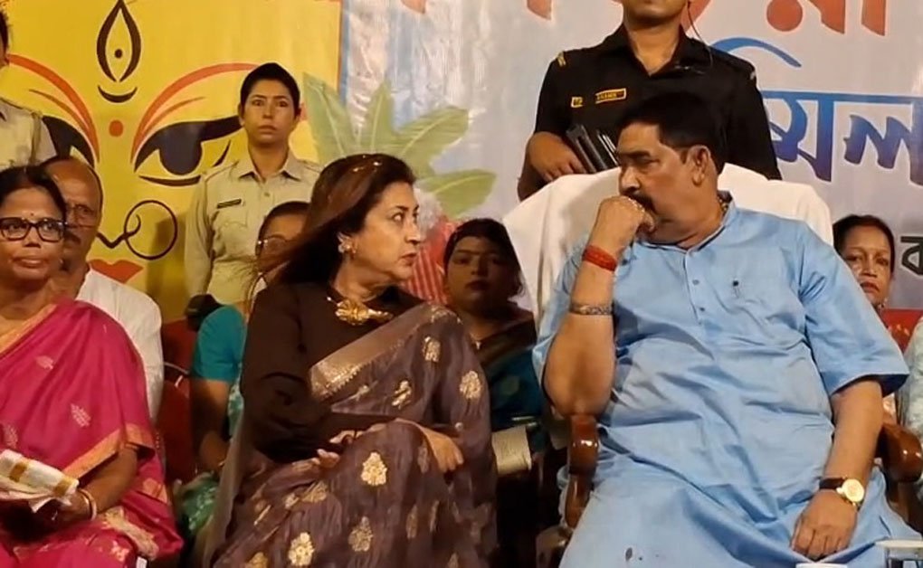 শুক্রবার সন্ধ্যায় সাঁইথিয়া শহরে আয়োজিত বিজয়া সম্মিলনী অনুষ্ঠানে অনুব্রত মণ্ডলের পাশাপাশি হাজির ছিলেন স্থানীয় বিধায়িকা নীলাবতী সাহাও। সেখানেই বক্তব্য রাখতে গিয়ে অনুব্রত মণ্ডল বলেন, ‘২৬-এর নির্বাচন মমতা বন্দ্যোপাধ্যায়ের ভোট। তৃণমূল দলের প্রার্থী যিনি-ই হোন না কেন তা নিয়ে চিন্তা করবেন না। আর নীলাবতী প্রার্থী মানেই মমতা বন্দ্যোপাধ্যায় প্রার্থী। তাই নীলাবতী না জিতলে মমতা বন্দ্যোপাধ্যায় মুখ্যমন্ত্রী হবেন না।