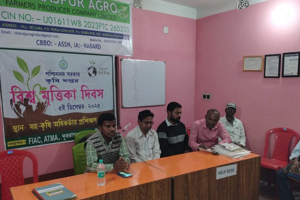 ৫ ডিসেম্বর দিনটি “বিশ্ব মৃত্তিকা দিবস” (World Soil Day) হিসেবে চিহ্নিত। বীরভূমের দুবরাজপুর ব্লক কৃষি দপ্তরের উদ্যোগে এবং দুবরাজপুর ফারমার্স প্রডিউসার কোম্পানি লিমিটেডের ব্যবস্থাপনায় আজ বেরসারা গ্রামে দিনটি উদযাপিত হয়। এই অনুষ্ঠানে এলাকার কৃষকরা উৎসাহের সঙ্গে অংশগ্রহণ করে। সেই সঙ্গে ড্রোনের সাহায্যে সরিষা গাছের উপর কীটনাশক ছড়ানো এদিন কৃষকদের হাতে-কলমে দেখানো হয়। অনুষ্ঠানে উপস্থিত ছিলেন ব্লক সহ কৃষি অধিকর্তা মঙ্গল দাস, ব্লকের টেকনোলজি ম্যানেজার বিপ্লব পতি, অ্যাসিস্ট্যান্ট ম্যানেজার ব্রজেশ্বর ভট্টাচার্য, সংস্থার সম্পাদক কাজল মণ্ডল প্রমুখ।