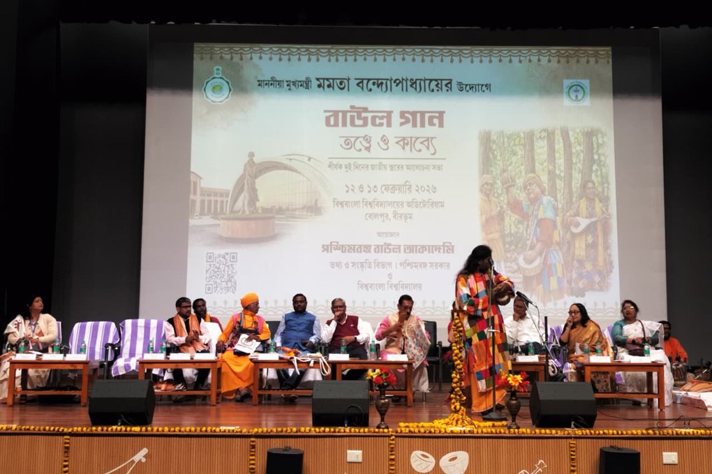 বাউল গান: তত্ত্বে ও কাব্যে এই শীর্ষক দুদিনের জাতীয় আলোচনা সভা অনুষ্ঠিত হলো বীরভূমের বোলপুর বিশ্ববাংলা বিশ্ববিদ্যালয়ের অডিটরিয়ামে। পশ্চিমবঙ্গ বাউল আকাদেমী ও পশ্চিমবঙ্গ সরকারের তথ্য সংস্কৃতি বিভাগ এবং বিশ্ব বাংলা বিশ্ববিদ্যালয়ের বাংলা বিভাগের যৌথ আয়োজনে তা সম্পন্ন হয়। ১২-১৩ ফেব্রুয়ারি এই দুদিনে বাউল গান বিষয়ক নানান তত্ত্ব ও তথ্য, গানকে কীভাবে জনমানসে ছড়িয়ে রস আস্বাদন করা যায় তার চুলচেরা বিশ্লেষণ সেই সঙ্গে বাউল গানের কথা ও সুরে দুদিন মুখরিত ছিল বিশ্ববিদ্যালয় চত্বর। অনুষ্ঠানের প্রথম দিনে গৌরবময় অতিথিরূপে উপস্থিত ছিলেন বোলপুরের বিধায়ক তথা রাজ্যের মন্ত্রী চন্দ্রনাথ সিনহা। উদ্যোক্তাদের অন্যতম উপস্থিত ছিলেন বিশ্ববাংলা বিশ্ববিদ্যালয়ের উপাচার্য অধ্যাপক ড. আবু তালেব খান, বীরভূম জেলা তথ্য ও সংস্কৃতি দপ্তরের জেলা আধিকারিক অরিত্র চক্রবর্ত্তী, পশ্চিমবঙ্গ রাষ্ট্রীয় বিশ্ববিদ্যালয়ের প্রাক্তন উপাচার্য অধ্যাপক ড. সৌরেন বন্দোপাধ্যায়, রবীন্দ্রভারতী বিশ্ববিদ্যালয়ের অধ্যাপক শ্রাবণী পাল প্রমুখ বিদগ্ধ ব্যক্তিত্বরা। আলোচনা সভার দ্বিতীয় দিনে মঞ্চে আসীন ছিলেন বাউল শিল্পী লক্ষ্মণ দাস বাউল, পশ্চিমবঙ্গ বাউল একাডেমীর সভাপতি কার্তিক চন্দ্র দাস বাউল, কলিকাতা বিশ্ববিদ্যালয়ের বাংলা বিভাগের অধ্যাপক ড. সুচরিতা বন্দোপাধ্যায়, বিশ্বভারতীর অধ্যাপক ড. অতনু শাসমল, বর্ধমান বিশ্ববিদ্যালয়ের অধ্যাপক ড. অমিতাভ দাস এমন গুণী শিল্পী ও বক্তারা। এদিন বিভিন্ন কলেজের অধ্যাপক ও গবেষক ছাত্র-ছাত্রীদের গবেষণা পত্র পাঠের আয়োজন করা হয়। সেই সঙ্গে বাউল গান ও তথ্য বিষয়ক নানা আলোচনা অনুষ্ঠিত হয়। দুদিনের এই আলোচনা সভার মূল আহ্বায়ক ছিলেন অধ্যাপক ড. দীনবন্ধু মণ্ডল।