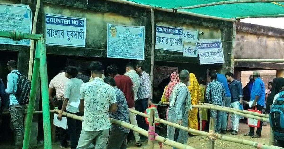 সম্প্রতি রাজ্যের মুখ্যমন্ত্রী মমতা বন্দ্যোপাধ্যায় অন্তর্বর্তী বাজেটে ঘোষণা করেন বাংলার বেকার যুবক যুবতীদের জন্য যুবসাথী এবং বাংলার ভূমিহীন ক্ষেতমজুরদের জন্য কৃষক বন্ধু প্রকল্পের কথা ঘোষণা করেন। ২১-৪০ বছর বয়সী যুবক যুবতীদের মধ্যে যারা বেকার অবস্থায় রয়েছে সরকারি কাজে যুক্ত নয় তাদের জন্য প্রযোজ্য প্রকল্পটি। সর্বাধিক পাঁচ বছর পর্যন্ত প্রতি মাসে দেড় হাজার টাকা করে ভাতা পাবেন। অন্যদিকে ভূমিহীন কৃষক যারা অপরের জমিতে ভাগচাষ করেন তারা আবেদনপত্র জমা করলে বছরে দুই কিস্তিতে চার হাজার টাকা পাবেন। এর প্রেক্ষিতে ব্লক ভিত্তিক গত ১৫ ফেব্রুয়ারী থেকে আবেদন পত্র গ্রহণ শিবির শুরু হয়েছে চলবে আগামী ২৬ ফেব্রুয়ারী পর্যন্ত বলে সরকারি ভাবে ঘোষণা করা হয়েছে। সেই মোতাবেক এদিন ২৪ ফেব্রুয়ারী খয়রাশোল ব্লকের খয়রাশোল বালিকা উচ্চবিদ্যালয়ে এদিন লোকপুর পঞ্চায়েত এলাকাবাসীদের জন্য শিবিরের মাধ্যমে ফর্ম বিতরণ ও জমা দেওয়া শুরু হয়। আবেদনকারীদের ভিড় লক্ষ্য ছিল লক্ষণীয়। শিবিরে যুব সাথী প্রকল্পের আবেদন জমা দিতে আসা অর্পিতা সাহার বক্তব্য রাজ্য সরকার বেকারদের প্রতি দৃষ্টি আকর্ষণ করেছেন। যার প্রেক্ষিতে এই যুব সাথী প্রকল্প। চাকরির অন্যান্য পরীক্ষার ক্ষেত্রে প্রয়োজনীয় খরচ অন্ততঃ এখান থেকে চালিয়ে নেওয়া যাবে। আবেদনকারীদের সহযোগিতা করতে আসা সমাজসেবী কাঞ্চন দে বলেন বাংলার মুখ্যমন্ত্রী রাজ্যের প্রতিটি মানুষের কথা ভাবেন এবং বাস্তবায়ন করেন। লক্ষী ভান্ডার, কন্যাশ্রী, রূপশ্রী, বিধবা ভাতা, বয়স্ক ভাতা, কৃষক বন্ধু ইত্যাদি জনমুখী প্রকল্পগুলো আগেই চালু হয়েছে । সেরূপ এবার বেকার যুবক যুবতীদের জন্য যুবসাথী এবং ভূমিহীন ক্ষেতমজুরদের জন্য কৃষক বন্ধু প্রকল্পের কথা ঘোষণা করেন। সেই মোতাবেক আবেদন পত্র জমা দেওয়ার কাজ চলছে গত ১৫ ফেব্রুয়ারি থেকে। লম্বা লাইন এবং মানুষের উৎসাহ উদ্দীপনা প্রমাণ করে মুখ্যমন্ত্রীর জনমুখী প্রকল্পের আওতায় আসা উপভোক্তারা আনন্দিত।