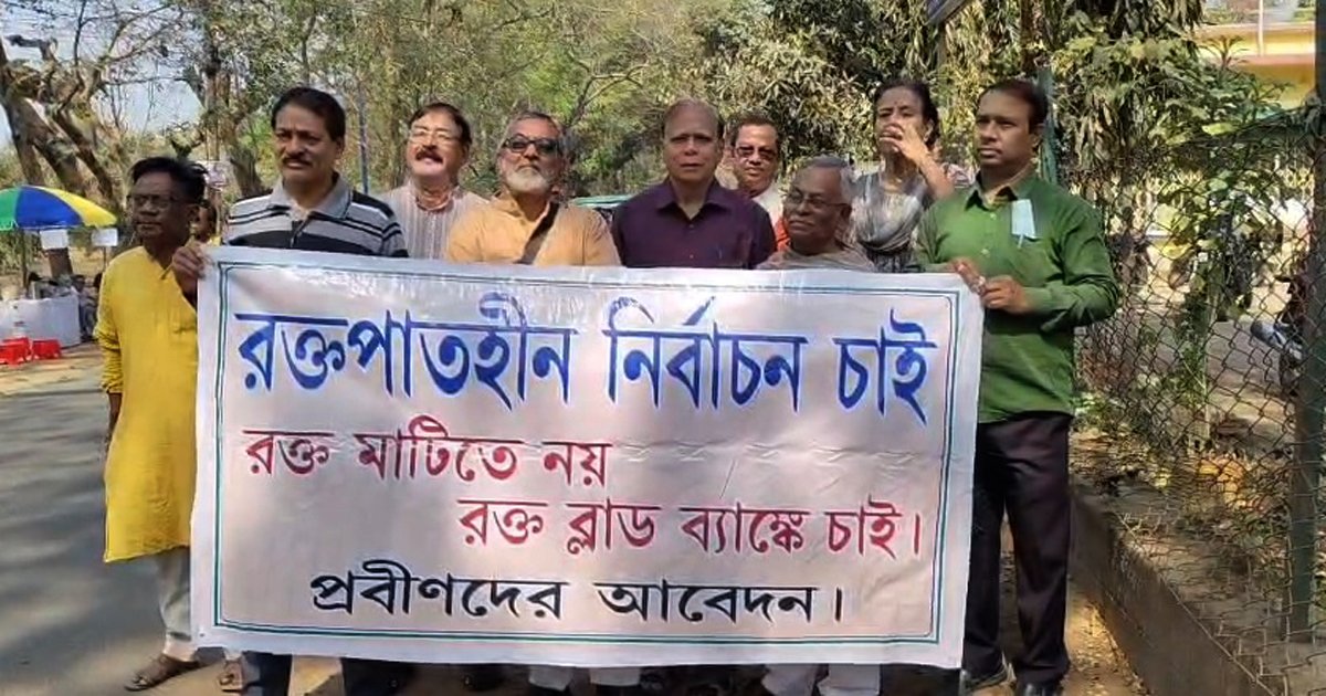 এখনো ভোটের দিনক্ষণ ঘোষণা হয়নি, তবে বিধানসভা নির্বাচন দোড়গোড়ায়। রক্তপাতহীন নির্বাচনের দাবিতে ২৭ ফেব্রুয়ারি শান্তিনিকেতনের পথে নামলেন এলাকার প্রবীণরা। অতীতে এরাজ্যে প্রতিটি নির্বাচনে রক্ত ঝরেছে৷ প্রাণহানির কারণে অনেক মায়ের কোল খালি হয়েছে। তাই এবার নির্বাচনে যাতে রক্ত না ঝরে, প্রাণহানি না হয় নির্বাচন কমিশনের প্রতি এমন আবেদন নিয়ে শান্তিনিকেতনের রাস্তায় পদযাত্রা করলেন এলাকার প্রবীণরা৷ উল্লেখ্য, প্রত্যেক নাগরিকের যেমন ভোটাধিকার রয়েছে, তেমনই নির্বাচন সুষ্ঠুভাবে সম্পন্ন করার দায়িত্ব নির্বাচন কমিশনের। শাসকদল ও বিরোধী—সব পক্ষের কাছেই প্রবীণদের আবেদন, রাজনৈতিক প্রতিদ্বন্দ্বিতায় নেমে যেন কারও প্রাণহানি না ঘটে।