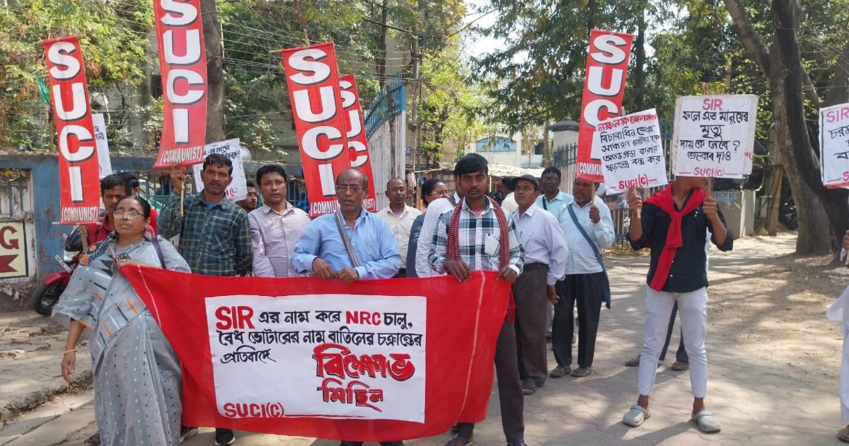 এসআইআর এর পর প্রকাশিত হয়েছে চূড়ান্ত ভোটার তালিকা। সেই তালিকায় ‘বিবেচনাধীন’ (Adjudication) অবস্থায় থাকা বহু প্রকৃত ভোটারের নাম চূড়ান্ত তালিকা থেকে বাদ পড়ার আশঙ্কা প্রকাশ করেছেন এসইউসিআই (SUCI – Communist) রাজনৈতিক দল। প্রকৃত ভোটারদের চূড়ান্ত তালিকায় নাম থাকার দাবিতে বীরভূমের রামপুরহাটে এসডিও (SDO) অফিসের সামনে আজ তারা তীব্র বিক্ষোভ কর্মসূচি পালন করে। অবিলম্বে সমস্ত বৈধ নাম চূড়ান্ত তালিকায় অন্তর্ভুক্ত করার দাবিতে স্লোগান দেওয়া হয়। স্থায়ী বাসিন্দা এবং নিয়মিত ভোটদাতাদের নাম ভোটার তালিকায় নিশ্চিত করার দাবিতে সেই সঙ্গে বীরভূমের লক্ষ লক্ষ বৈধ ভোটারের নাম চূড়ান্ত ভোটার তালিকা থেকে বাতিলের প্রতিবাদে তাদের এই কর্মসূচি বলে দলের পক্ষ থেকে জানানো হয়। বৈধ ভোটারদের নাম চূড়ান্ত ভোটার তালিকায় রাখার দাবিতে আজ ২ ফেব্রুয়ারি বীরভূমের রামপুরহাট শহর জুড়ে মিছিল ও মহকুমা শাসক দপ্তরের সামনে এসইউসিআই (SUCI) কমিউনিস্ট দলের পক্ষ থেকে বিক্ষোভ কর্মসূচি সংঘটিত হয়। নেতৃত্বে ছিলেন জেলা কমিটির সদস্য সুবর্ণ মাল, গোলাম মুজতোবা, যুব সংগঠনের নেতা সেলিম আক্তার, ছাত্রনেতা কাঞ্চন রবিদাস, মহিলা নেত্রী শামীমা পারভীন ও রামপুরহাট লোকাল কমিটির ইনচার্জ ফরিদা ইয়াসমিন, দিলীপ ধীবর প্রমুখ।