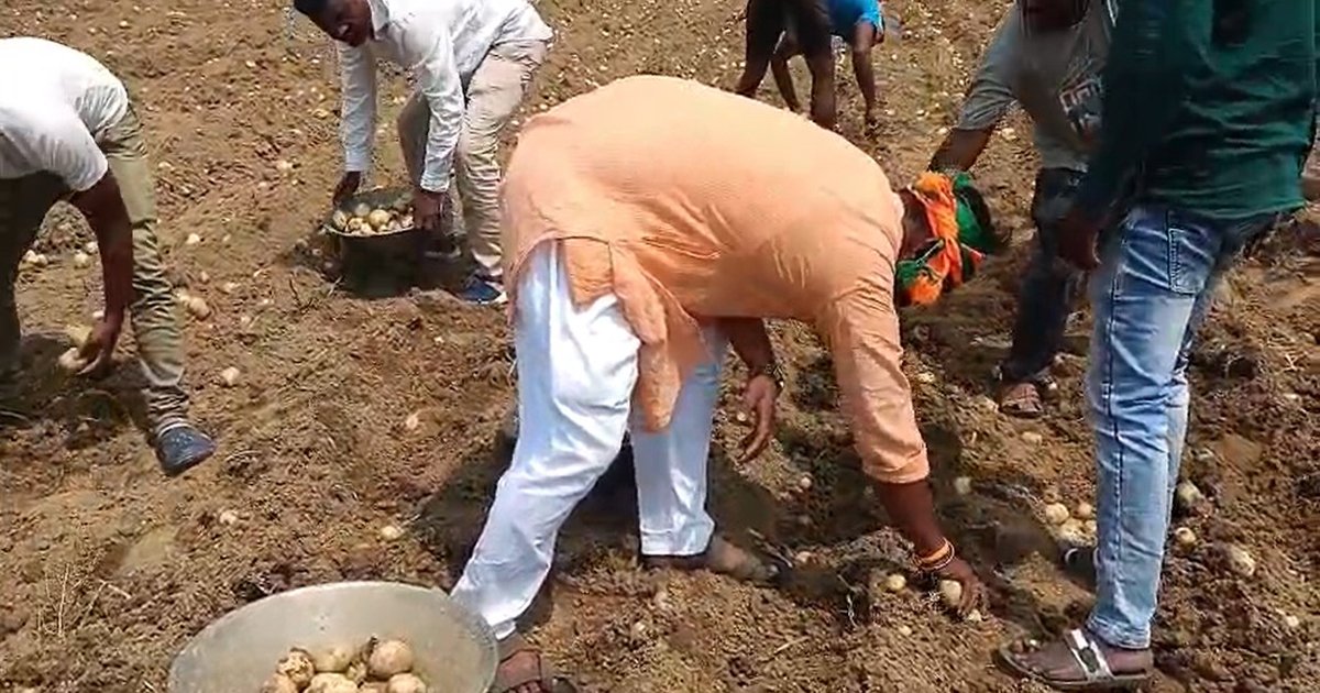 বীরভূমের নানুর বিধানসভার ইক্ষুধারা গ্রামের আলু ক্ষেতে মাঠে নেমে আলু তুললেন বিজেপি প্রার্থী খোকন দাস। নানুরে ভোট প্রচারের কেন্দ্রবিন্দুতে ‘গ্রাউন্ড কানেক্ট’! তপ্ত রোদে রাজনৈতিক উত্তাপ যখন তুঙ্গে, তখন রাজনীতির আঙিনা ছেড়ে সরাসরি কৃষকদের জমিতে নেমে পড়লেন নানুর বিধানসভা কেন্দ্রের বিজেপি প্রার্থী খোকন দাস। বীরভূমের নানুর ব্লকের ইক্ষুধারা গ্রামের মাঠে আলু তোলার কাজে হাত লাগিয়ে এলাকায় নজর কেড়েছেন তিনি।