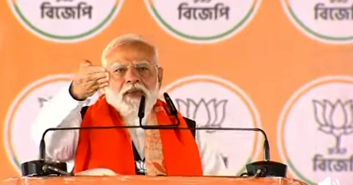 প্রধানমন্ত্রী তাঁর বক্তৃতায় এই মাটির বীরত্ব ও আধ্যাত্মিক ঐতিহ্যের কথা স্মরণ করেন। তিনি বলেন, “বীরভূম দুকড়িবাল দেবী, সাধক বামাক্ষ্যাপা, নিত্যানন্দ প্রভু, তারাশঙ্কর বন্দ্যোপাধ্যায় এবং প্রাক্তন রাষ্ট্রপতি প্রণব মুখোপাধ্যায়ের পবিত্র ভূমি।” এরপর তিনি বিজেপি প্রার্থীদের হাতে হাত মিলিয়ে সম্ভাষণ শুরু করেন। নাম না করে তৃণমূল সরকারকে তীব্র আক্রমণ করেন তিনি। মোদির অভিযোগ, বর্তমান টি এম সি সরকার উন্নয়নের অঙ্গীকার করে বালি, পাথর ও কয়লা লুটে মত্ত এবং বাংলায় ‘গুন্ডারাজ ও জঙ্গলরাজ’ কায়েম করেছে। বিজেপি প্রার্থীদের পাশে দাঁড়িয়ে প্রধানমন্ত্রী বলেন, মা-মাটি-মানুষের নাম করে বাংলার সম্পদ লুট করা হচ্ছে। এর হিসাব নেওয়া হবে।তৃণমূল অহংকারী হয়ে দেশের রাষ্ট্রপতি ও সংবিধানকে অপমান করেছে, যার যোগ্য জবাব মানুষ আগামী ২৩ ও ২৯ এপ্রিলের নির্বাচনে দেবে। মোদি এদিন বিজেপি সরকারের বিভিন্ন জনকল্যাণমূলক প্রকল্পের খতিয়ান তুলে ধরেন এবং বাংলায় ‘ডবল ইঞ্জিন’ সরকার গড়ার ডাক দেন। তিনি স্পষ্ট ভাষায় জানান, “বাংলায় আর ভয় নয়, এবার ভরসা চাই।” বীরভূমের শিক্ষা ব্যবস্থা ও বন্ধ স্কুল নিয়ে উদ্বেগ প্রকাশ করে তিনি জনগণকে আশ্বস্ত করেন যে, তাঁদের সার্বিক উন্নয়নের দায়িত্ব হবে ‘মোদি গ্যারান্টি’। পরিশেষে, পদ্ম চিহ্নে ভোট দিয়ে বীরভূম থেকে দুর্নীতির শাসন উপড়ে ফেলার আহ্বান জানিয়ে তিনি সভা শেষ করেন। এদিন মঞ্চ আলোকিত করেন জেলার বিজেপি নেতৃত্ব। সিউড়ি বিধানসভার বিজেপি প্রার্থী জগন্নাথ চট্টোপাধ্যায়, দুবরাজপুরের বিদায়ী বিধায়ক অনুপ কুমার সাহা, বোলপুরের প্রার্থী দিলীপ কুমার ঘোষ, রামপুরহাটের প্রার্থী ধ্রুব সাহা সহ ১১ টি কেন্দ্রের বিজেপি প্রার্থীরা এবং রাজ্য নেতৃত্ব উপস্থিত ছিলেন।