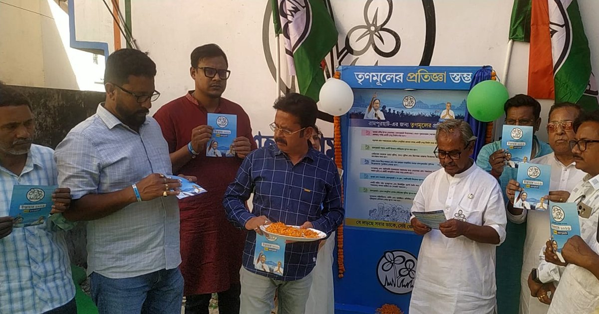 আসন্ন বিধানসভা নির্বাচনকে পাখির চোখ করে বীরভূমের রামপুরহাটে কোমর বেঁধে নামল তৃণমূল কংগ্রেস। স্থানীয় দলীয় কার্যালয়ে বর্ণাঢ্য অনুষ্ঠানের মাধ্যমে নির্বাচনী ইশতেহার প্রকাশ ও ‘প্রতিজ্ঞা স্তম্ভ’ উন্মোচন করলেন তৃণমূল প্রার্থী ড. আশিস বন্দ্যোপাধ্যায়। জয়ের বিষয়ে আত্মবিশ্বাসী ড. বন্দ্যোপাধ্যায় এদিন স্পষ্ট জানান, পুনরায় ক্ষমতায় এলে একগুচ্ছ জনকল্যাণমূলক প্রকল্প বাস্তবায়নই হবে তাঁর মূল লক্ষ্য। ঘোষিত ইশতেহারে পরিকাঠামো উন্নয়নে বিশেষ জোর দেওয়া হয়েছে। রামপুরহাট থেকে ময়ূরেশ্বরের পুরাতনগ্রাম পর্যন্ত দ্বারকা নদীর ওপর সেতু এবং দেবুরিয়া গ্রামে নতুন সেতু নির্মাণের প্রতিশ্রুতি দেওয়া হয়েছে। শহরের ক্রীড়াপ্রেমীদের জন্য একটি ইনডোর স্টেডিয়াম এবং সাধারণ মানুষের সুস্বাস্থ্যের প্রয়োজনে মেডিক্যাল কলেজে MRI পরিষেবা ও বিশেষজ্ঞ ডাক্তার নিয়োগের কথা উল্লেখ রয়েছে ইশতেহারে। এছাড়াও রয়েছে ফুটপাথ বিক্রেতাদের পুনর্বাসন, আদিবাসী ও সংখ্যালঘুদের জন্য সাংস্কৃতিক কেন্দ্র এবং পৃথক আদিবাসী বিদ্যালয় স্থাপনের অঙ্গীকার। আধুনিক বর্জ্য ব্যবস্থাপনা ও কৃষি উন্নতির জন্য কোল্ড স্টোরেজ তৈরির পাশাপাশি যুবকদের কর্মসংস্থানমুখী করতে নার্সিং ও আইটি প্রশিক্ষণ কেন্দ্র গড়ার ওপর বিশেষ গুরুত্ব দেওয়া হয়েছে। এই ইশতেহার ঘিরেই এখন সরগরম রামপুরহাটের রাজনৈতিক মহল।