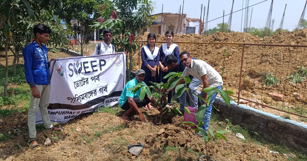 কাঠফাটা রোদে তপ্ত রাঙামাটির জেলা বীরভূম। পাশাপাশি ভোটের আবহে রাজনৈতিক পারদ ঊর্ধ্বমুখী। এরই মধ্যে সবুজায়ন তথা বৃক্ষ রোপন কর্মসূচির মাধ্যমে পরিবেশ পরিস্থিতি, ভোটের শান্তি শৃঙ্খলা বজায় রাখার বার্তা ছড়িয়ে দেওয়া হয় জেলাজুড়ে বিশেষ কর্মসূচির মাধ্যমে। ১২ এপ্রিল রবিবার আসন্ন বিধানসভা নির্বাচনকে সামনে রেখে ভোটার সচেতনতা বাড়াতে অভিনব এক ‘সবুজ সংকল্পের’ সাক্ষী থাকল জেলাবাসী। নির্বাচন কমিশনের SVEEP (Systematic Voters’ Education and Electoral Participation) কর্মসূচির অঙ্গ হিসেবে জেলার ১১টি বিধানসভা কেন্দ্রের ৫৫টি বুথে একযোগে পালিত হলো বৃক্ষরোপণ উৎসব।