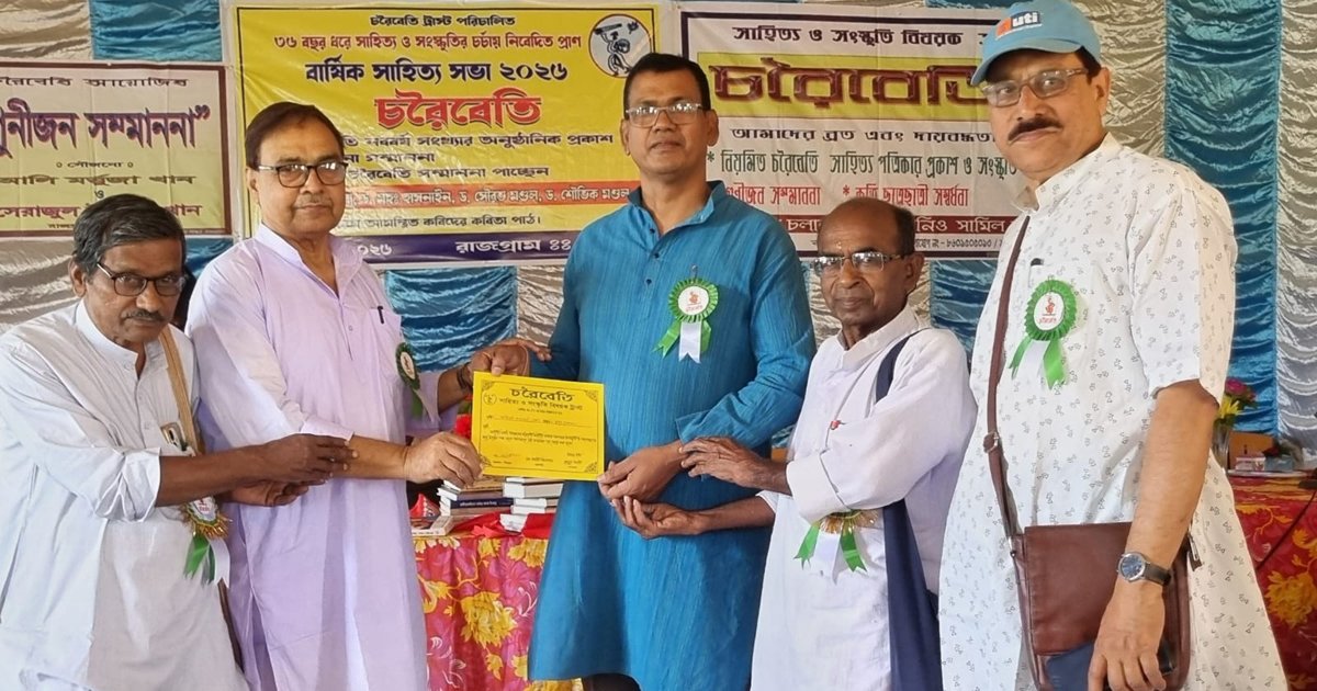 চৈত্র শেষে সাহিত্য ও সংস্কৃতির মেলবন্ধনে মুখরিত হয়ে উঠল বীরভূমের রাজগ্রাম মহামায়া উচ্চ বিদ্যালয়ের প্রেক্ষাগৃহ। ১২ এপ্রিল, রবিবার ‘চরৈবেতি’ পত্রিকার উদ্যোগে আয়োজিত হলো বার্ষিক সাহিত্য সভা,পত্রিকা উন্মোচন ও গুণীজন সংবর্ধনা অনুষ্ঠান। নিরুপমা রায় চৌধুরীর উদ্বোধনী সঙ্গীতের মূর্ছনায় অনুষ্ঠানের শুভ সূচনা হয়। এরপর সম্পাদক কুদ্দুস আলির প্রারম্ভিক ভাষণে সভার গুরুত্ব ফুটে ওঠে।