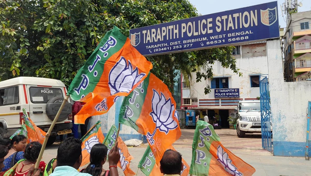 তারাপীঠ থানার সামনে পথ অবরোধ ও বিক্ষোভ প্রদর্শন বিজেপির