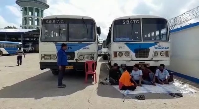 রামপুরহাট এসবিএসটিসি বাস ডিপোতে অনির্দিষ্ট কালীন অবস্থান বিক্ষোভ ও কর্মবিরতি