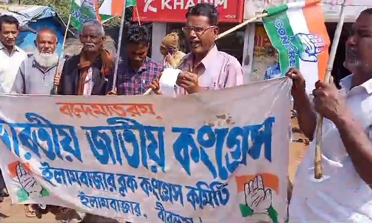 জাতীয় কংগ্রেসের ব্যাংক একাউন্ট ফ্রিজ করার প্রতিবাদে বীরভূমের ইলামবাজার ব্লক জাতীয় কংগ্রেসের বিক্ষোভ মিছিল