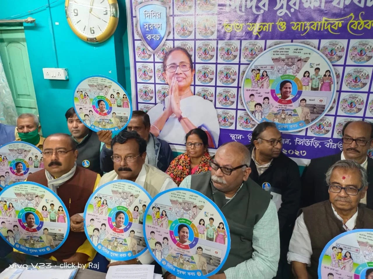 তৃণমূলের নতুন কর্মসূচি “দিদির সুরক্ষা কবচ”-এই নিয়ে সিউড়ি তৃণমূল পার্টি অফিসে সাংবাদিক বৈঠক