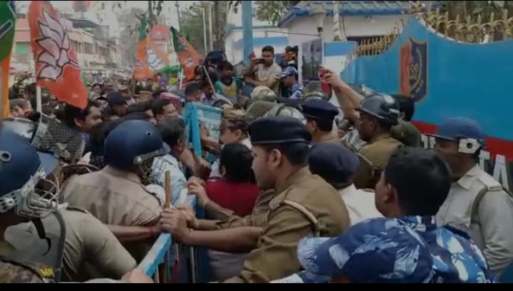 বীরভূমের সাঁইথিয়া থানায় ডেপুটেশন দিতে এসে পুলিশ-বিজেপির খন্ডযুদ্ধ