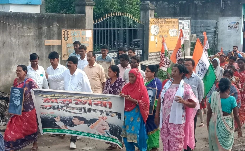 বিজেপি ছেড়ে তৃণমূল কংগ্রেসে যোগদান ও বাংলা ভাষা অবমাননার প্রতিবাদে মিছিল খয়রাশোলে
