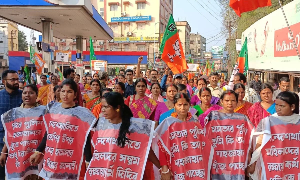 বীরভূমের সিউড়িতে বিজেপির মহিলা মোর্চার প্রতিবাদ ও বিক্ষোভ মিছিল