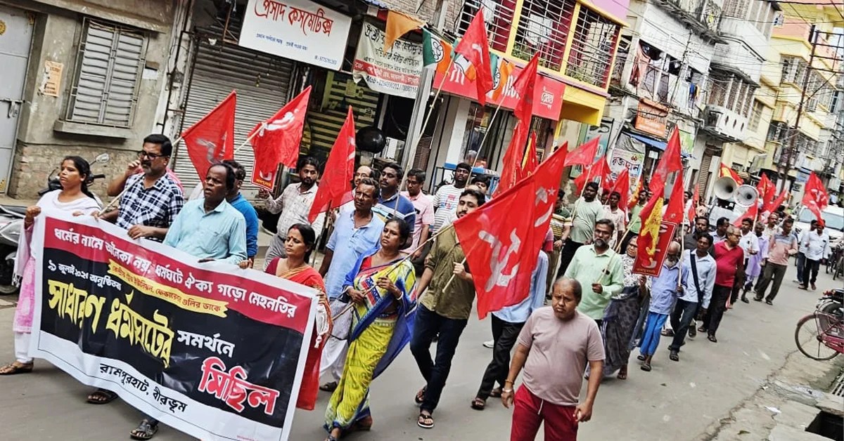 আগামী ৯ জুলাই ধর্মঘটের সমর্থনে আজ মিছিল অনুষ্ঠিত হলো বীরভূমের রামপুরহাটে