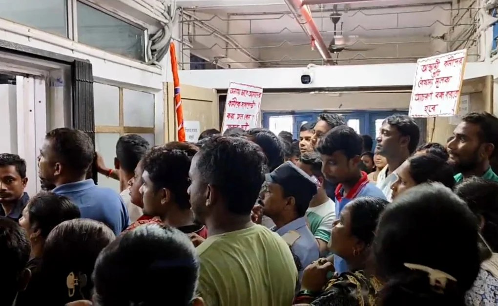 বীরভূমের রামপুরহাট গভঃ কলেজ হাসপাতালে শ্রমিকদের প্রতিবাদ আন্দোলন