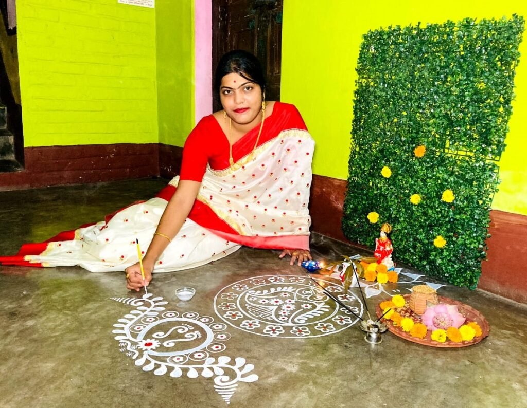 আজ কোজাগরী লক্ষ্মী পুজো। আর এই লক্ষ্মীপুজোয় মেঝেতে খড়িমাটি বা চালের গুঁড়ার শ্বেতশুভ্র আলপনার চল অতি প্রাচীন কাল থেকেই। মা লক্ষ্মী হলেন ধন সম্পদ ও প্রাচুর্যের দেবী। আর এই দেবীকে আবাহন জানানো হয় আলপনার মাধ্যমে। এই আলপনা হল একটি বাংলার লোকশিল্প শৈলী। আলপনা বা আলিম্পন হল লেপন করা কারুকার্য। অন্যান্য মাঙ্গলিক অনুষ্ঠানে যে আলপনা আঁকা হয়, লক্ষ্মীপুজোর আলপনার রীতি তার থেকে কিছুটা আলাদা। লক্ষ্মীর বাহন পেঁচা, লক্ষ্মী শস্যের দেবী। তাই লক্ষ্মীর আলপনাতে থাকে পেঁচা, ধানের শিষ, লক্ষ্মীর পদচিহ্ন, পদ্মফুল। এই রেখাচিত্রের মাধ্যমে অন্যান্য বারের মতো এবারে ও লক্ষ্মীকে আবাহন জানানো হলো।ময়ূরেশ্বরের ন-পাড়া গ্রামের রায় চৌধুরী বাড়ির গৃহবধূ শ্রীপর্ণা রায় চৌধুরী জানান, প্রত্যেক বছরের মতো এবারও লক্ষ্মী দেবীর আরাধনায় ব্রতী হয়েছি। প্রতি বছরের মতো এবারও আলপনা এঁকেছি। আর আলপনা ছাড়া লক্ষ্মীপুজো ভাবাই যায় না। আর আমাদের রায় চৌধুরী বাড়ির মন্দিরেও সাড়ম্বরে পালিত হয় লক্ষ্মীপুজো। সাঁইথিয়া রক্ষাকালী তলার গৃহবধূ তথা সিউড়ি সুভাষ পল্লীর বাসিন্দা স্কুল শিক্ষিকা শিউলি মন্ডল জানান, ছোট থেকেই ছবি আঁকা ও আলপনা আঁকা আমার শখ। তবে লক্ষ্মী পুজোর আলপনার মধ্যে আলাদা একটা বৈশিষ্ট্য আছে। লক্ষ্মীর আলপনাতে প্রাধান্য পায় পেঁচা, ধানের শিষ, লক্ষ্মীর পদচিহ্ন, পদ্মফুল। খড়ি বা রঙ দিয়ে মেঝের উপর তুলি দিয়ে এবার ও এঁকেছি আলপনা। আর আলপনা আঁকতে আঁকতেই গুনগুন করে গেয়েছি–এসো মা লক্ষ্মী, বসো ঘরে….।সিউড়ি ডাঙালপাড়ার যুবতী দেবিকা দত্ত বলেন, ছোট থেকেই আঁকা আঁকির শখ। আলপনা ও আঁকি। আর লক্ষ্মী পুজোতে আলপনা হবে না, সেটা আবার হয় নাকি? লক্ষ্মীপুজোর সঙ্গে আলপনা অঙ্গাঙ্গিভাবে জড়িত। বাংলার প্রায় প্রতিটি ঘরেই বাংলার এই লোকশিল্প শৈলীর মাধ্যমে আবাহন করা হয় দেবী লক্ষ্মীকে। এবারেও সেই রীতি মেনেই লক্ষ্মীপুজোতে মেতে উঠেছে বাঙালি।